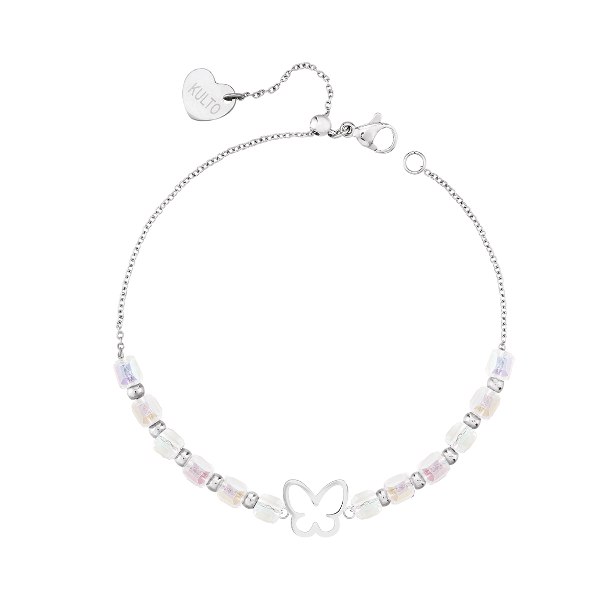 Bracelet with central charm, crystals, and thin chain. Length: 200 mm.