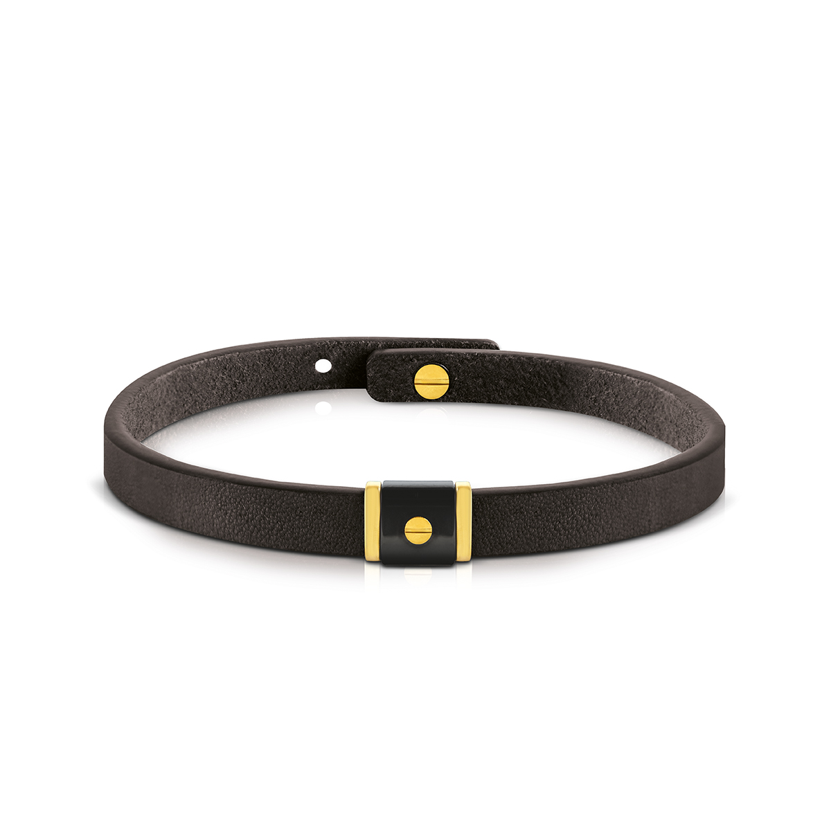 Bracciale in pelle nero con elemento centrale personalizzato